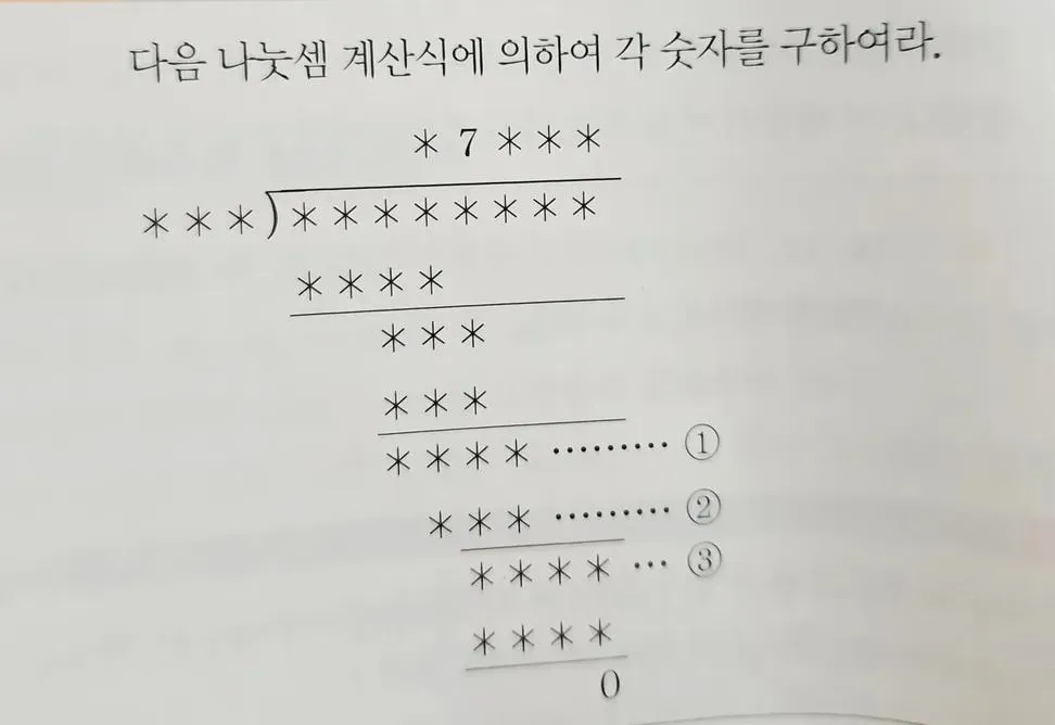 충식산(蟲食算)이라는 고전 퀴즈가 있습니다. 나눗셈에서 한 자리만 빼고 숫자의 자리를 모두 벌레가 파먹은 상황에서 수식을 원상복구하는 퀴즈입니다.